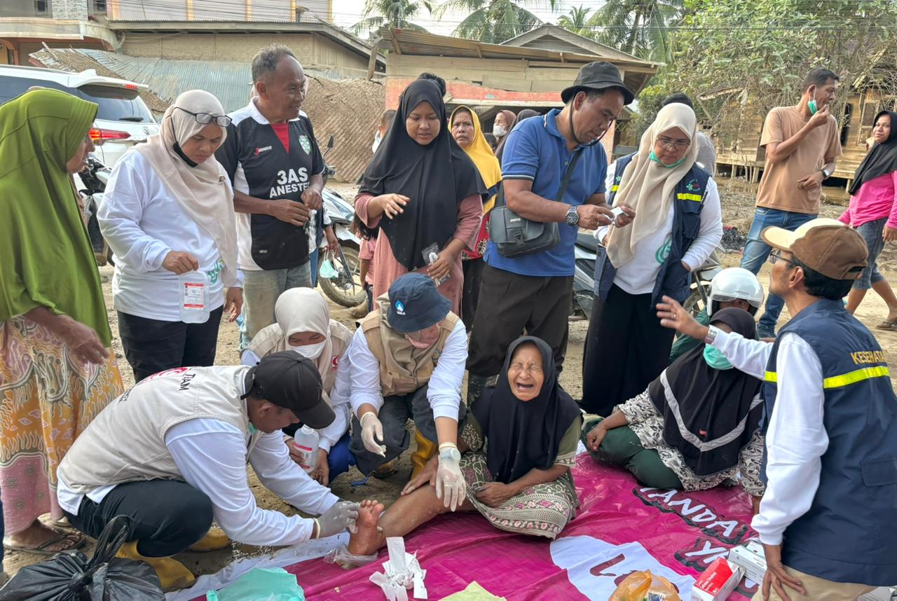 LHOKSEUMAWE – Tim kesehatan dari UPTD Puskesmas Banda Sakti berkolaborasi dengan Dinas Kesehatan, kembali menunjukkan kepeduliannya dengan menyalurkan bantuan sosial dan melaksanakan pelayanan kesehatan di wilayah Aceh Tamiang pada Minggu, 14 Desember 2025.